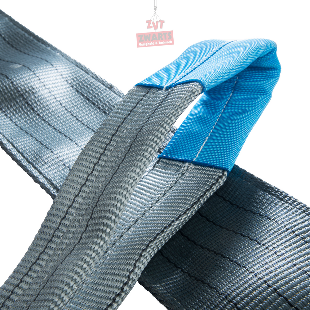 - Lus-lus uitvoering: Door de versmalde en verstevigde lussen aan beide uiteinden verlengt dit de levensduur van de hijsband.